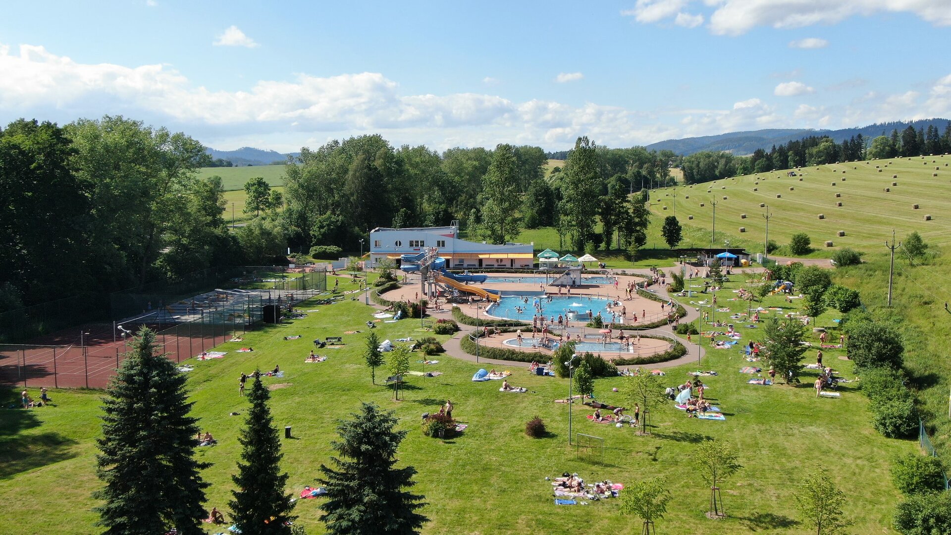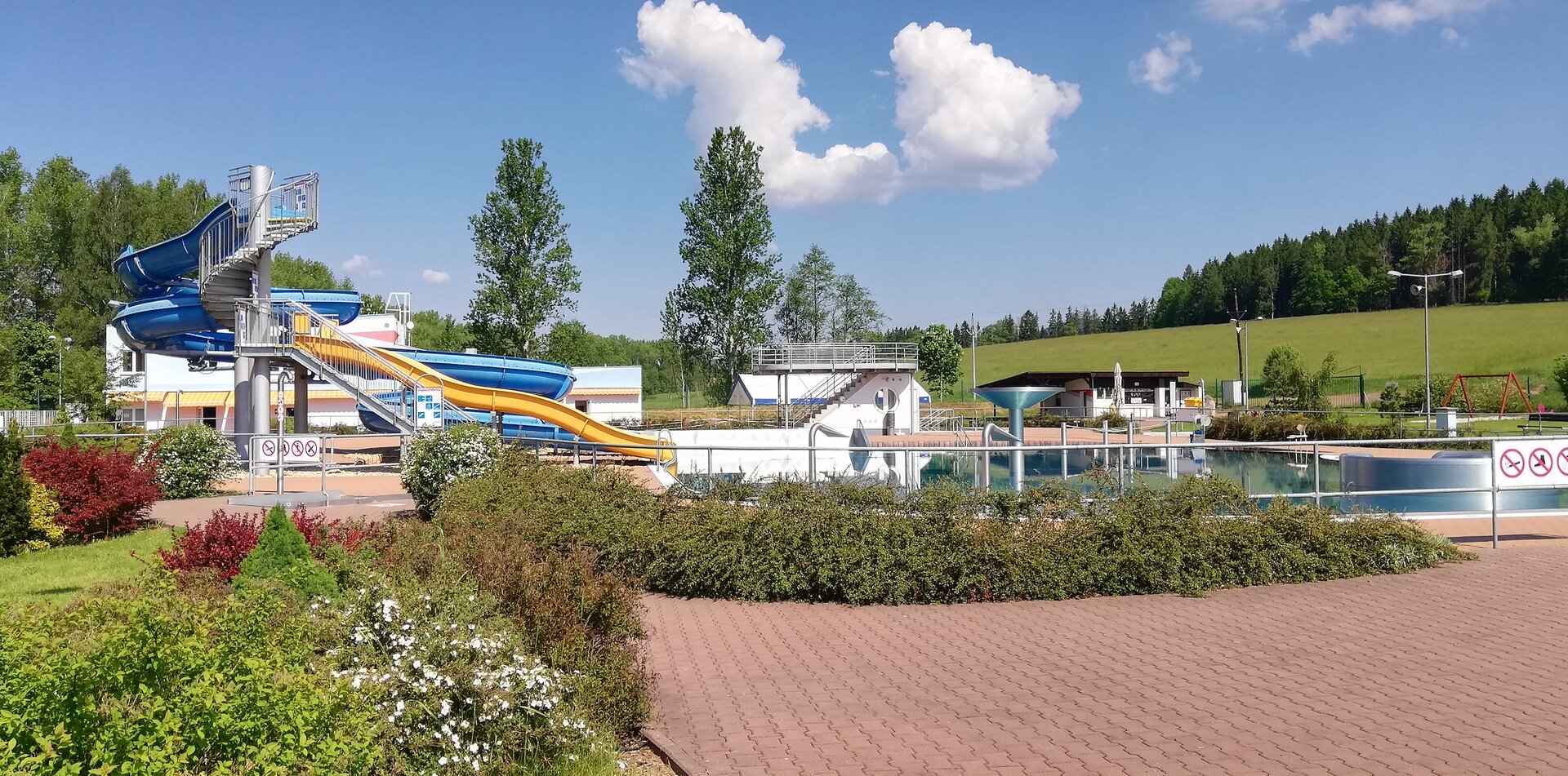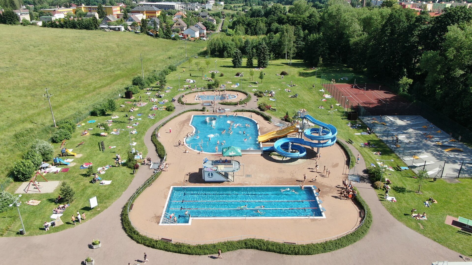 - Rekreační bazén - nepravidelný oválný tvar s množstvím vodních chrličů a masážních trysek s hloubkou do 120 cm. Na tento bazén je napojen 60m dlouhý tobogán a 3 m široká skluzavka