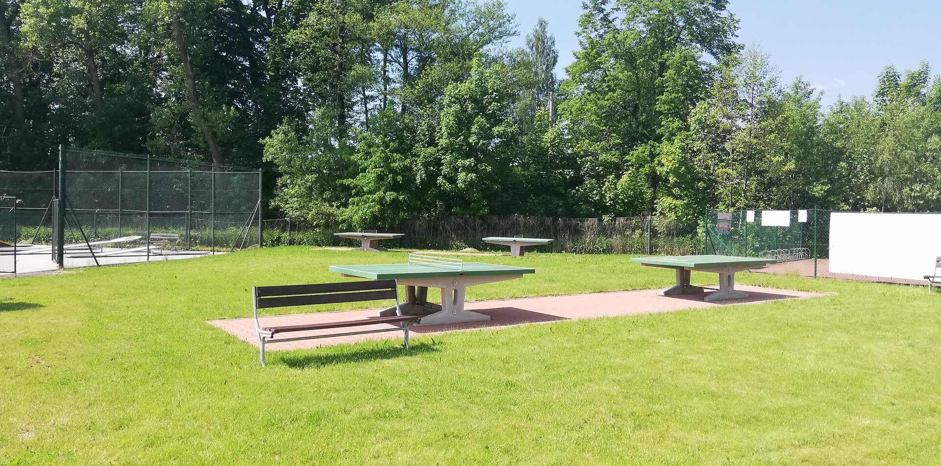 Okolo bazénů je množství laviček k sezení, u rychlého občerstvení jsou k dispozici všem návštěvníkům lavice se stoly a slunečníky
