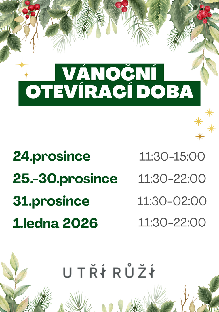SILVESTR U TŘÍ RŮŽÍ - Oslavte s námi příchod nového roku. Budeme mít prodlouženou otevírací dobu a nebude chybět ani speciální menu a přípitek. Rezervujte si své místo ještě dnes!