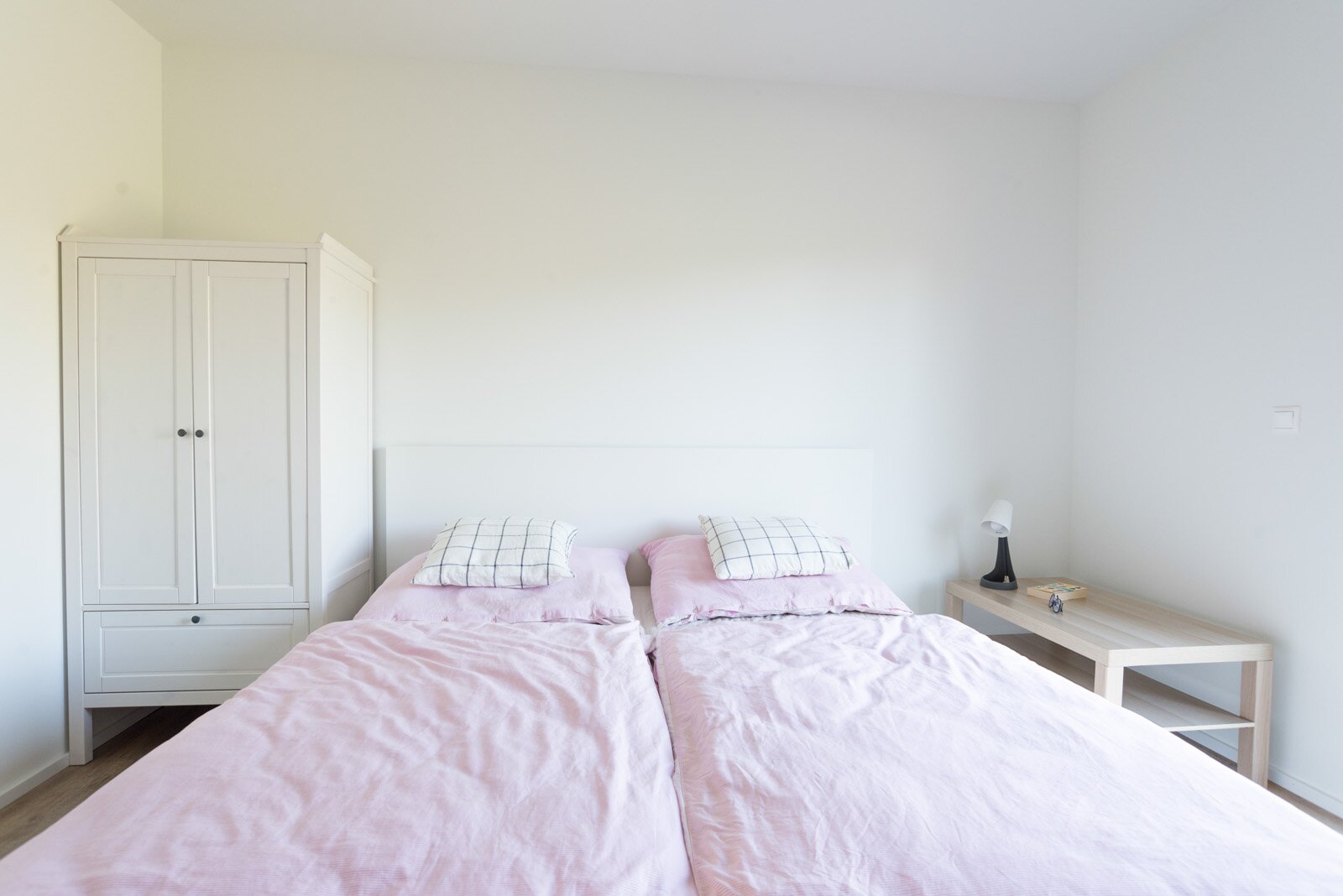 Hlavní obytný prostor s kuchyní, obývacím pokojem a dvěma samostatnými lůžky, ložnice s manželskou postelí a úložnými prostory,